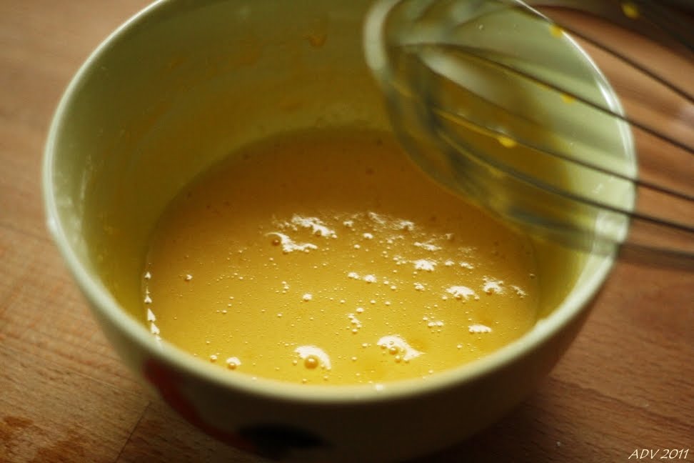 3. beat the egg-yolks, re-heat the milk slightly and add slowly to the yolks.